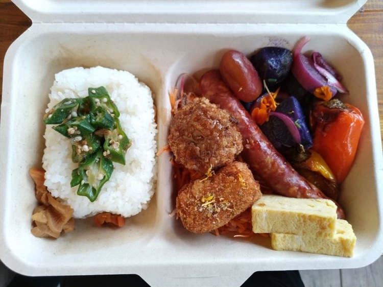 A total of 38 participants, including JTBGMT employees and general guests, departed from Tokyo Station to Chiba Prefecture by bus. First, we visited KURKKU FIELDS, a circular and sustainable farm. At KURKKU FIELDS, they practice creating an environment where byproducts and water generated within the facility are circulated. After touring the facility with explanations from staff members, we enjoyed lunch boxes made with vegetables and game meat produced on the farm.